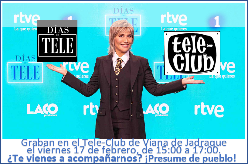 "Días de Tele" de TVE1 vendrá al Tele-Club de Viana de Jadraque el próximo viernes 17 de febrero, de 15:00 a 17:00 horas, a grabar nuestro Tele-Club.