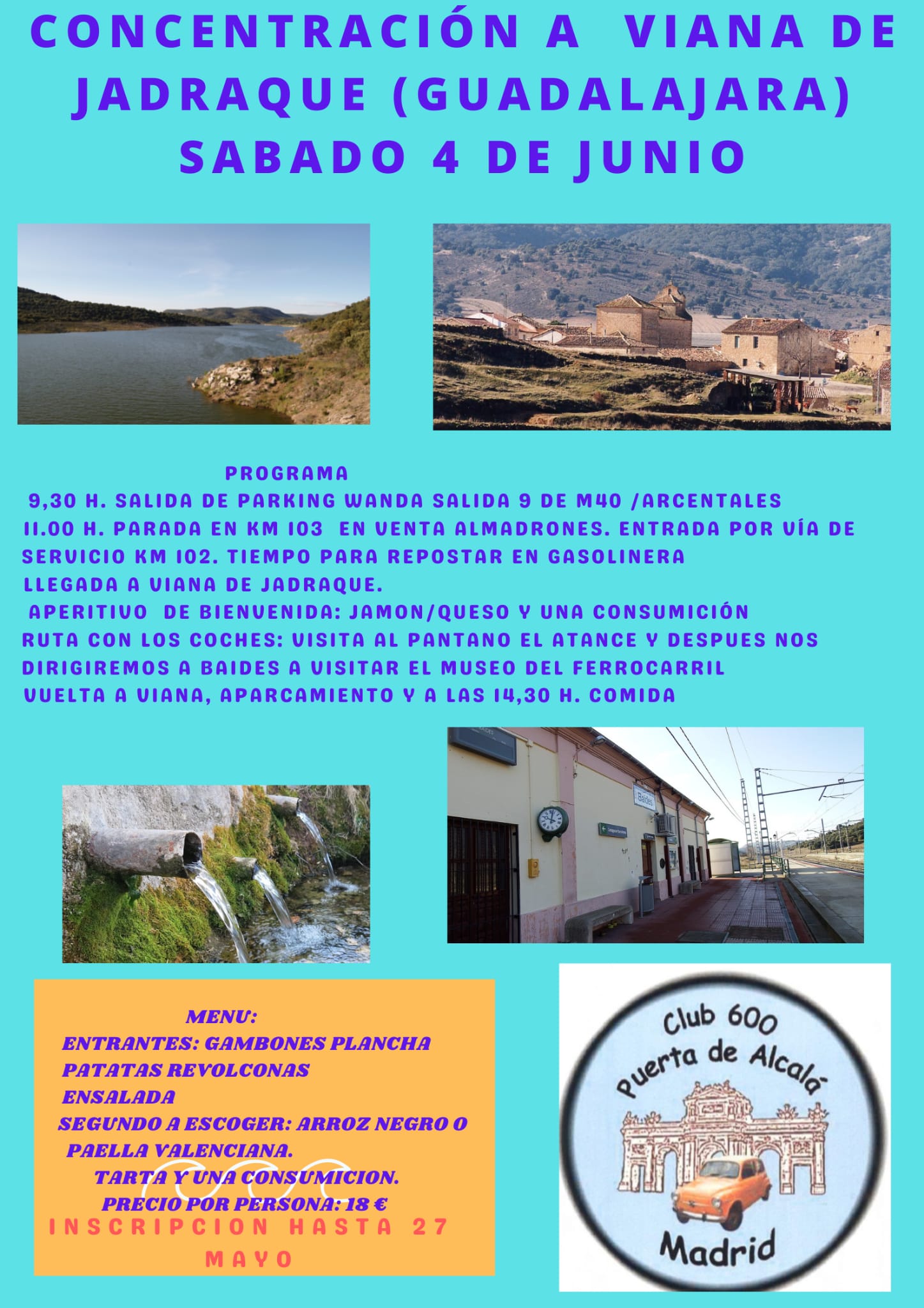 El próximo día 4 de junio, sábado, vuelve a Viana de Jadraque una concentración de 600 organizada por el "Club 600 Puerta de Alcalá".
