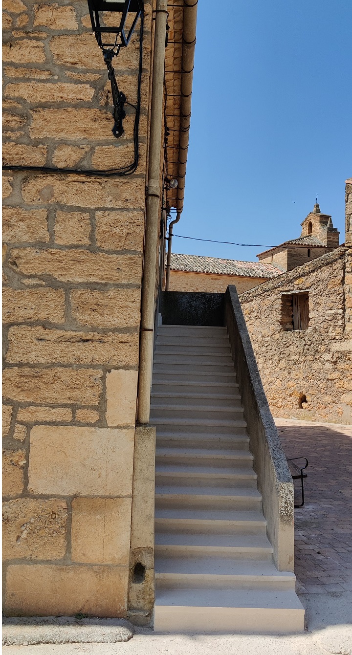 La escalera de acceso a las dependencias municipales, motivado al paso del tiempo y a las inclemencias metereológicas (fríos extremos, heladas, etc). se encontraban en muy mal estado de conservación con peldaños rotos, etc.