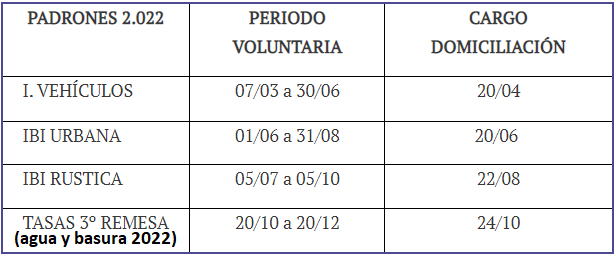 En la imagen se muestra el calendario de pagos, según afecta a nuestro Municipio.