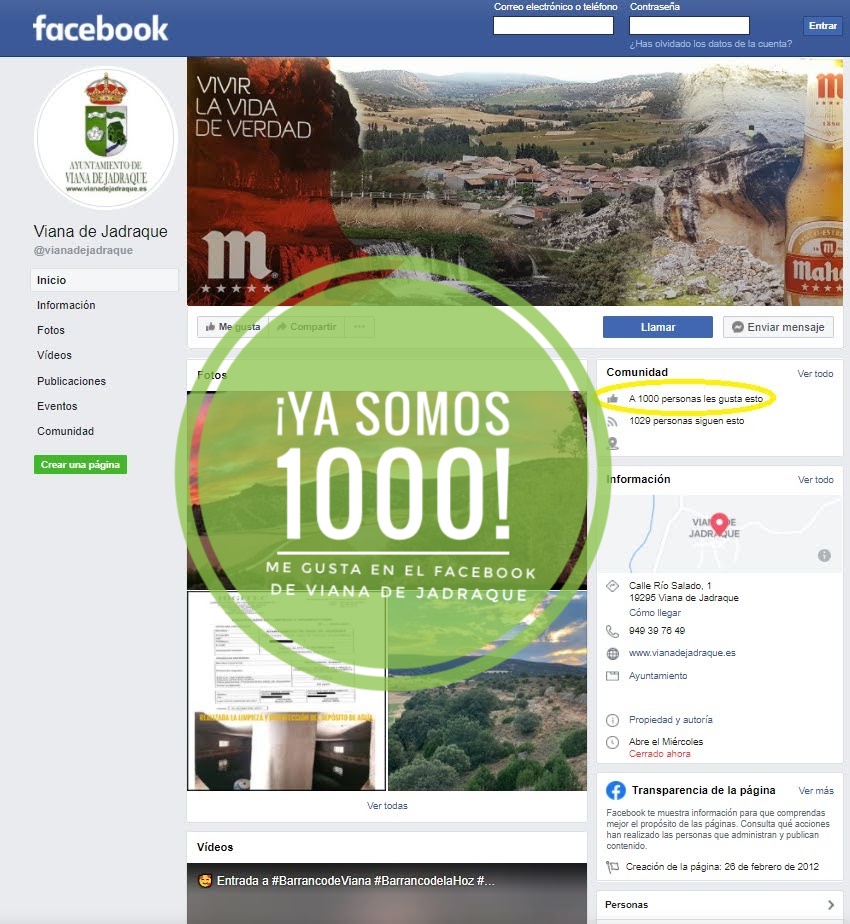 Nos ha hecho muchísima ilusión llegar a la cifra de 1.000 ME GUSTA en Facebook. 1.000 seguidores que se ponen al día sobre las novedades del pueblo