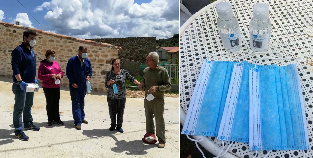 Después de estudiar en qué viviendas hay personas confinadas en este momento en el pueblo, se ha procedido a entregar en cada una de ellas un pequeño bote de gel hidroalcohólico junto a un juego de mascarillas.