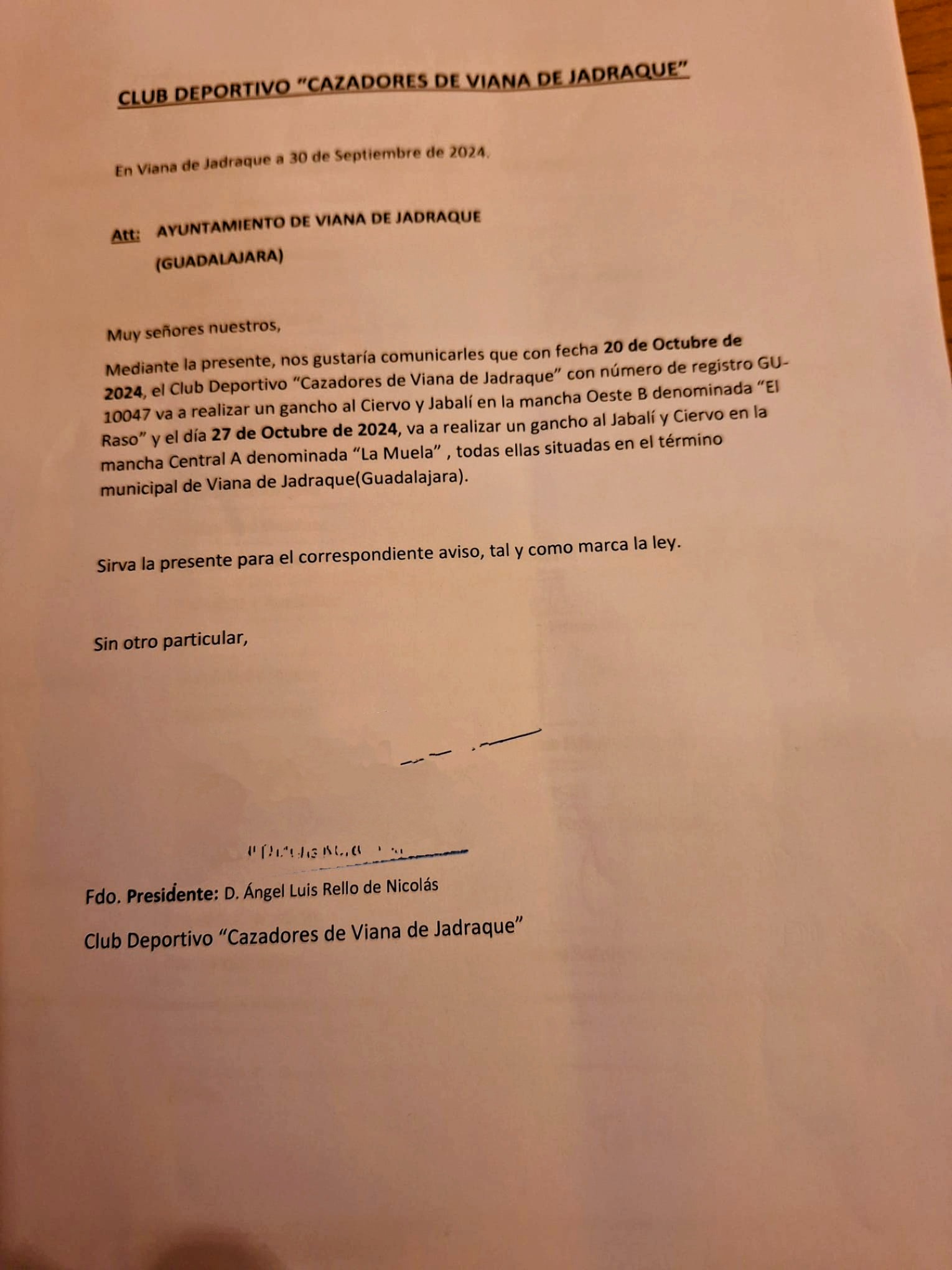 El día 20 de octubre realizarán un gancho al ciervo y jabalí en la mancha Oeste denominada El Raso.