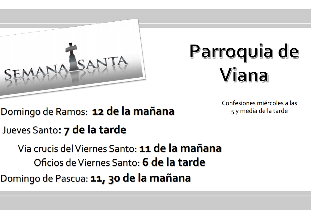 El Párroco de Viana de Jadraque, don Rafael Amo, nos envía los horarios de los Actos Religiosos de Semana Santa en nuestro pueblo.
