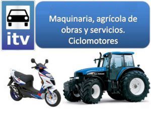 Dicha inspección la pueden pasar todos los TRACTORES AGRÍCOLAS, MAQUINARIA AGRÍCOLA AUTOPROPULSADA, REMOLQUES AGRÍCOLAS, MAQUINARIAS DE OBRAS Y SERVICIOS, ASÍ COMO LOS CICLOMOTORES DE DOS RUEDAS.
